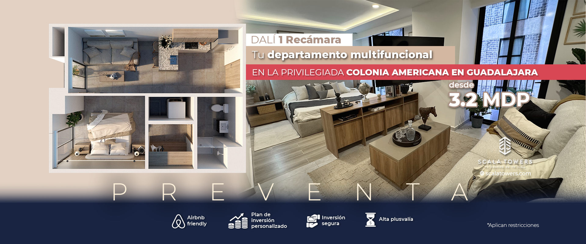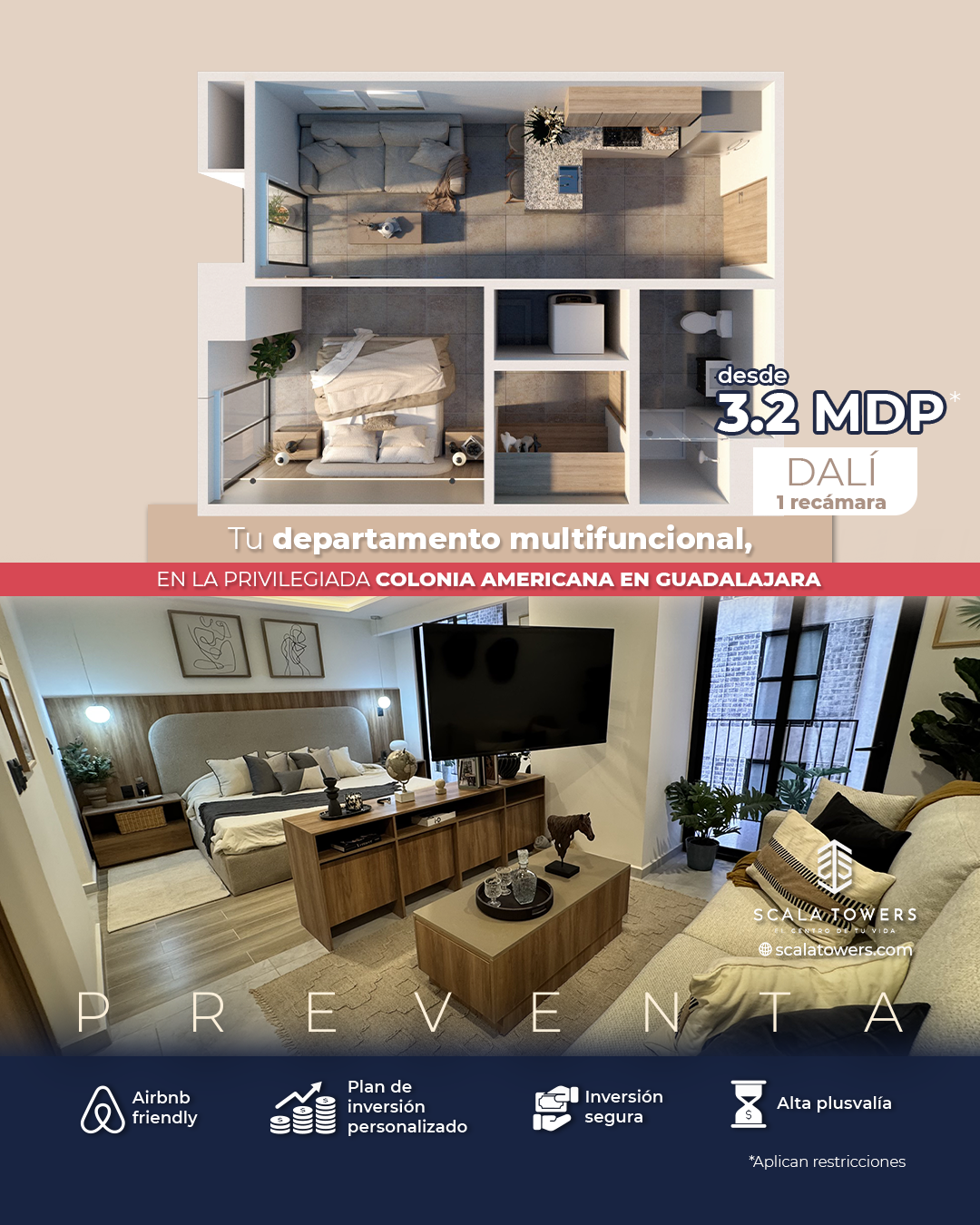En el epicentro de Guadalajara, descubre el Departamento DALÍ en Scala Towers: con espacios multifuncionales, modernos y en ubicación privilegiada.